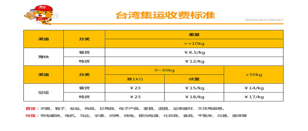 我家集運台灣專線收費標準如下:(詳情點擊這裡)
